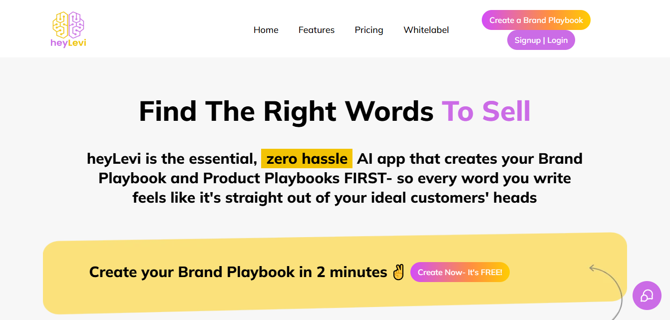 Raise your company’s marketing game with heyLevi, the only AI sales enablement tool designed to simplify core positioning and copywriting without punctual engineering. Get going with a free trial now.